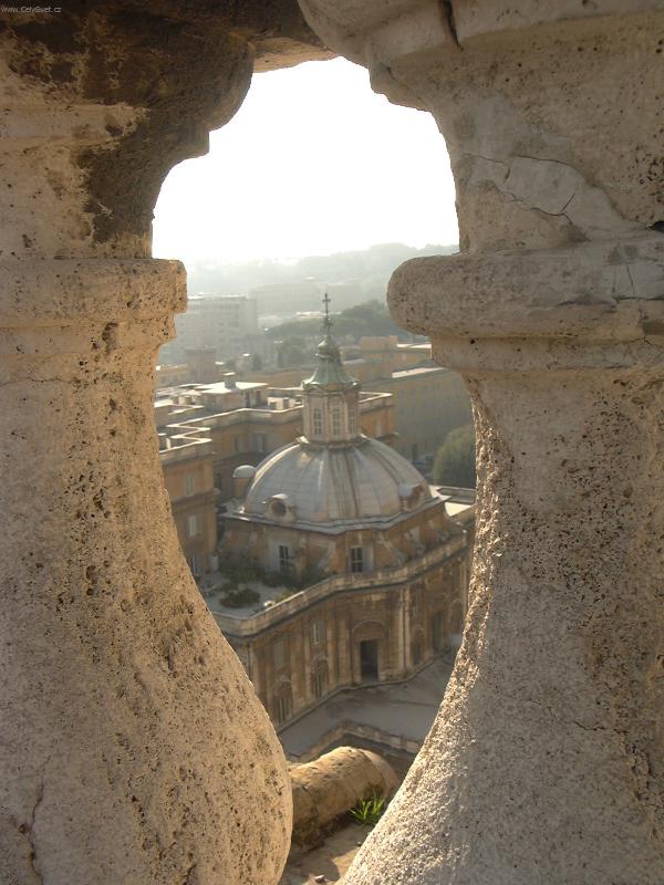 Pohled průhledem.-Foceno ze svatopetrské kopule.